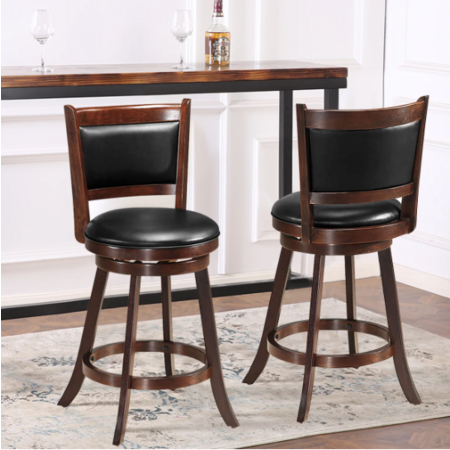 2 Pack: Costway 360° Swivel Counter Height Wood Chairs w/ Upholstered Seat Footrest $115.99 + Free Shipping