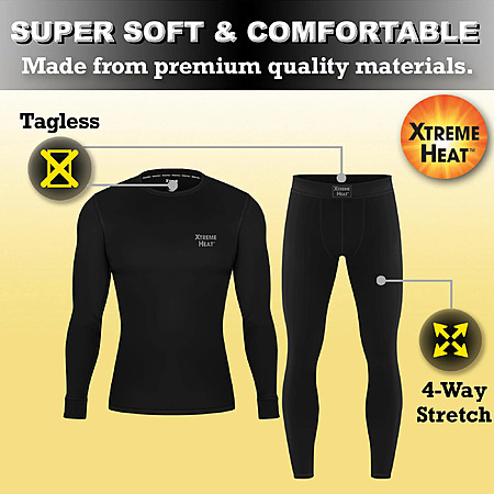 Walmart [walmart.com] has Xtreme Heat Men's Base Layers Set Compression Pants & Shirt Thermal Wear (Grey or Black) for $8.07. Shipping is free w/ Walmart+ (free trial available [walmart.com]) or on orders $35+.