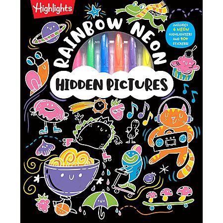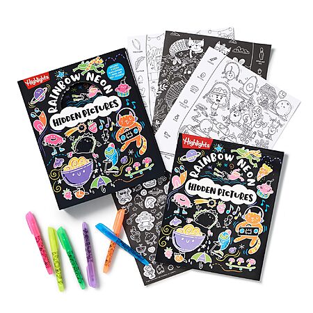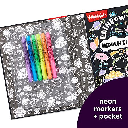 Highlights Hidden Pictures Coloring Kits - Rainbow Activity Book with Neon Markers 40 Stickers (Hardcover) for