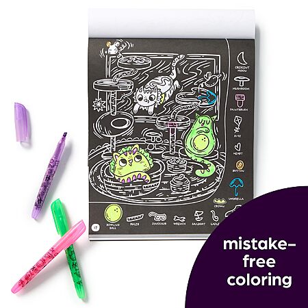- 40+ Stickers: This color-your-own stickers experience adds a neon flair to sticker fun as kids seek, find and stick on the whimsical objects