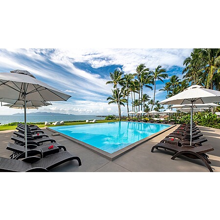 Located about 2.5 hours drive from Nadi Airport with direct beach access, The Pearl Resort & Spa Fiji via Luxury Escapes have 5+ night stays starting from $909 for 2 people. All inclusions (listed below) are for 2 people. You may choose from 5-15 nights, all for a