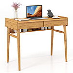 Costway Bamboo Writing Desk with 2 Storage Drawers and Open Shelf $140 + Free Shipping