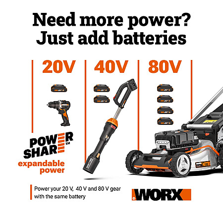 Worx 40V Power Share 14" Cordless Lawn Mower with 2x 4.0Ah Batteries at Walmart $99