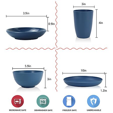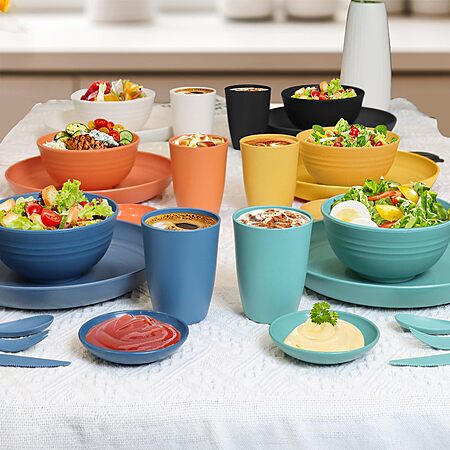28-Piece Wrova Wheat straw plates and bowls sets with cutlery (Blue) on sale for $25.19 - 50% off when you enter the coupon code