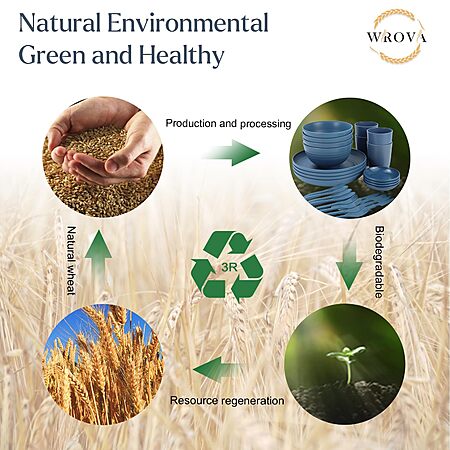 - ✦【𝗣𝗮𝗰𝗸𝗮𝗴𝗲 𝗜𝗻𝘀𝗶𝗱𝗲】 - Wrova 28pack wheat straw dinnerware sets contains 4pcs 10inches wheat straw plates with deep edge,4pcs 26oz wheat straw bowls,4pcs 12oz wheat straw cups,4pcs sauce plates and 12pcs cutlery as well. All of them are bpa and lead free,lightweight and easy to clean. Ideal for new apartment and dormitory.