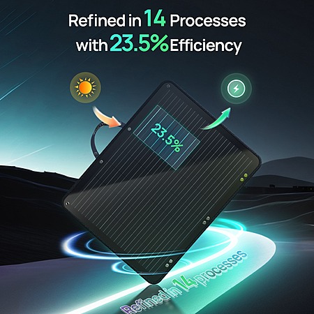 - High-Efficiency Solar Charging: Delivers 23.5% conversion efficiency with premium monocrystalline cells—30% more power than conventional panels—for faster, more reliable energy even in low light.