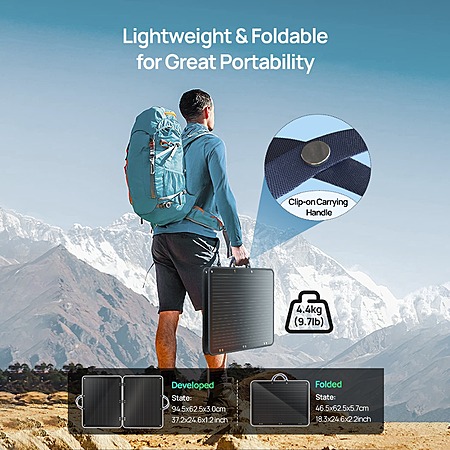 - Ultra-Portable & Backpack-Friendly: Weighs just 9.7 lbs and folds down to 24.6" x 18.3" x 2.2". Includes a 9.84-ft cable and 10 adapters for compatibility with most power stations. Perfect for camping and RV adventures.