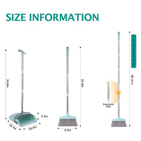 Model: XXXFLOWER Broom and Dustpan Set with Cleaning Teeth, 55" Long Handle Indoor Sweeping Combo for Home Office Kitchen, Bluish Green
