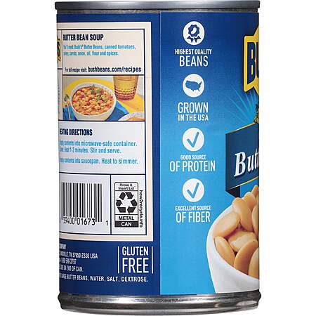 Bush's Large Butter Beans Beans, Canned Butter Beans, 16 oz Can $0.63