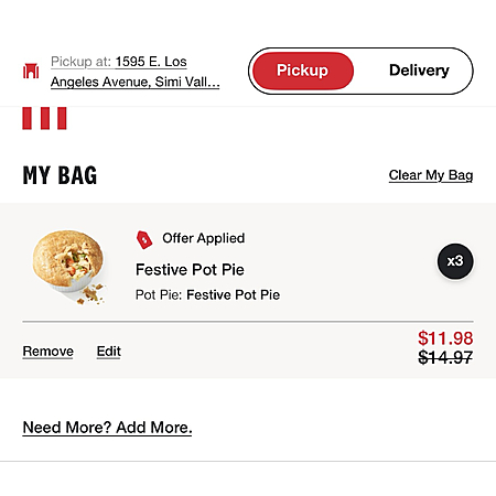 Use the app or website. Add 3 to cart, find the $2 pot pie coupon, redeem, pickup. Be prepared to wait 17 minutes like I am in the parking lot while I post. Enjoy