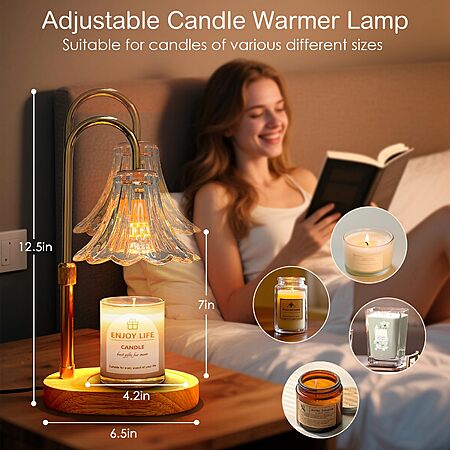 - [Exquisitely Crafted Silhouette and Adjustable Height]: The electric candle+warmer+lamp features a unique Petal of trumpet flower - style glass shade, casting soft, even light that elevates your space like a gallery. The candle warmer lamp rust - resistant build ensures enduring elegance, and its compact form fits easily on shelves, desks, and nightstands. Moreover, The candle warmer lamp's adjustable lamp height design can be perfectly adapted to different candles (such as jar candle) to meet various scent needs and use scenarios.