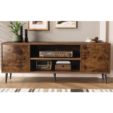 | Product Description: | Experience Homall high quality wooden TV cabinet, designed for the stylish and functional home. Homall TV cabinet has a spacious tabletop, central shelf and two spacious storage rooms, perfect for your needs to store all kinds of entertainment equipment and household items. Its sturdy metal frame provides solid support to ensure the stable placement of TV and audio equipment. Homall Entertainment Center is not only a piece of furniture, but also the finishing touch of your home style. Spacious countertop design:The Homall TV cabinet offers an ultra-wide countertop space, easily accommodating large-sized TVS, game consoles, audio equipment, etc. Whether it's watching movies, playing games or enjoying music, it can keep your entertainment devices in good order and allow you to enjoy a carefree entertainment experience. Intelligent center shelf:The elaborately designed middle display stand ingeniously divides the space, providing you with an additional display area. It can be used to display decorations, family photo albums or precious collections, and at the same time, it also has a temporary storage function, allowing items to be taken and placed freely. Two large-capacity storage bins:Equipped with two spacious storage Spaces, it is easy to store items such as remote controls, game discs, books and DVDS, keeping the living room tidy and orderly. Stable metal frame:The thickened metal support structure is adopted to ensure the stable placement of TV and audio equipment. Whether it's watching intense games or enjoying thrilling music, it can provide reliable support, allowing you to fully enjoy a peaceful time. Modern and fashionable appearance:Selected high-quality solid wood material, with a smooth and fine surface and a natural and warm original wood tone. The simple and modern design style can not only blend perfectly into various home environments, but also add an elegant touch to the living room and enhance the overall taste of the space. |