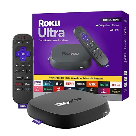 Roku - Ultra | 4K/HDR10+/Dolby Vision & Atmos Streaming Device Rechargeable Backlit Voice Remote Pro Free & Live TV - Black $69.99