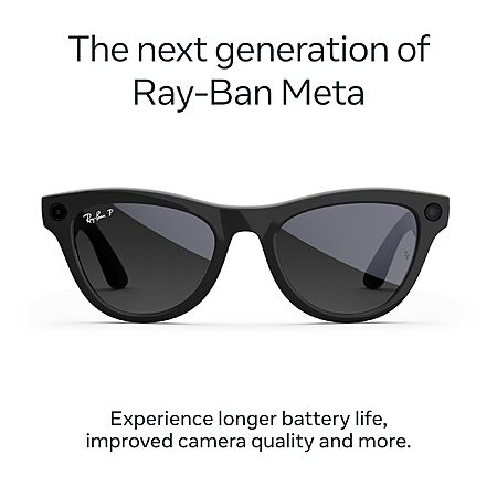 Ray-Ban Meta (Gen 2), Skyler, Shiny Black | Smart AI Glasses for Men, Women — 2x Battery Life — 3K Ultra HD Resolution — 12 MP Ultra-Wide Camera $283.26