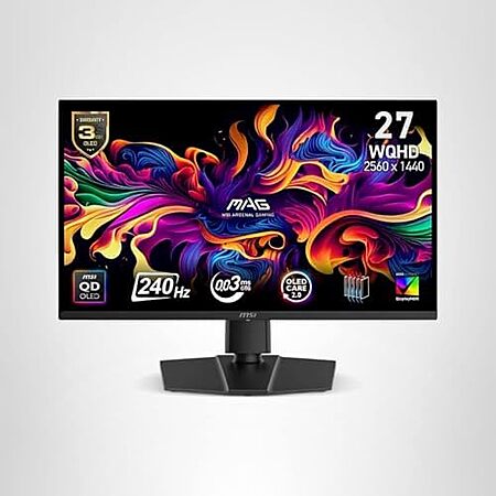 Model: MSI MAG 271QP QD-OLED X24 27-inch 2560 x 1440 (QHD) Gaming Monitor, 240Hz, Adaptive-Synch, HDMI, DisplayPort, VESA Mountable, Tilt, Height Adjustable, Speaker, 0.03ms, Black
