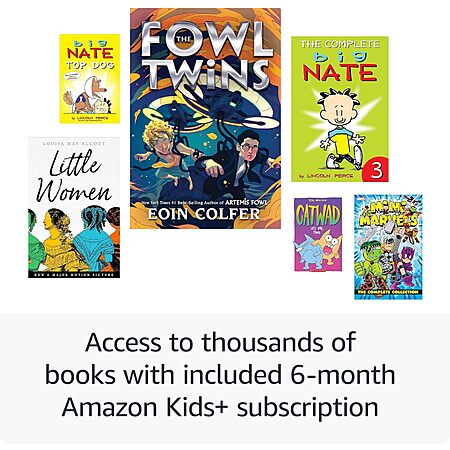 Includes 6 months of Amazon Kids+, a subscription designed for kids aged 3-12, providing unlimited access to thousands of age-appropriate books. After 6 months, your subscription will automatically renew every month starting at just $5.99/month plus applicable tax. You may cancel at any time by visiting the Amazon Parent Dashboard or contacting Customer Service.