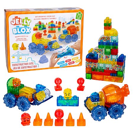 Model: Jelly Blox Construction Site Set | Includes 75 Pieces | Toddler & Preschool Building Blocks Kids Can Squeeze, Stretch, Squish | Safety Tested & Ouch-Free | Tactile, Sensory Play Toy for Ages 2+