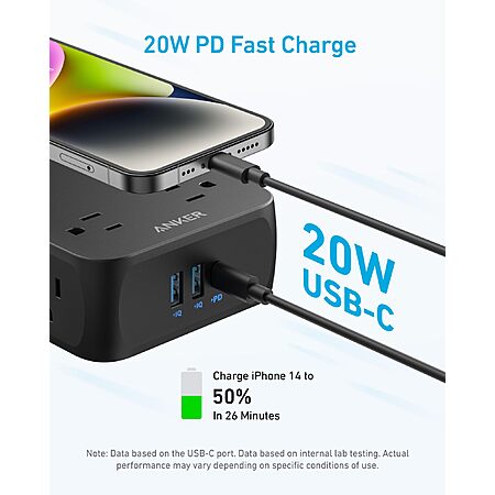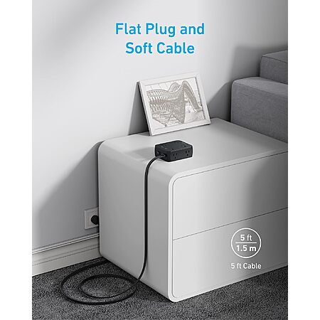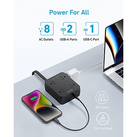 Model: Anker Surge Protector Flat Plug Power Strip 2000J, 5ft Thin Extension Cord, 8 Outlets,2 USB A and 1 USB C Port,20W for iPhone15,Wall Mount,Compact for Home,Office,Room,TUV Listed (Black, 5FT)
