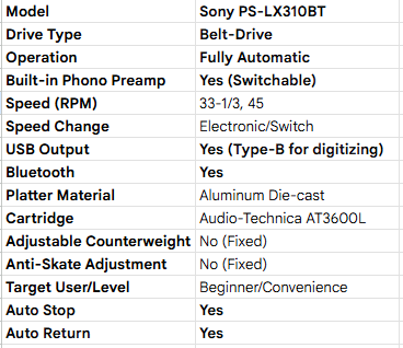Black Friday pricing found at Amazon, Best Buy, or Sony direct. It's a good entry level turntable at this price. It's not an advanced user turntable, nor is it priced that way. There's a lot of bang here for ~$200.