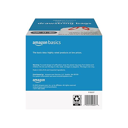 Amazon Basics Trash Bags, Tall Kitchen Drawstring, Unscented, 13 Gallon, 120 Count $12.63 Subscribe & Save Amazon free shipping Amazon Prime
