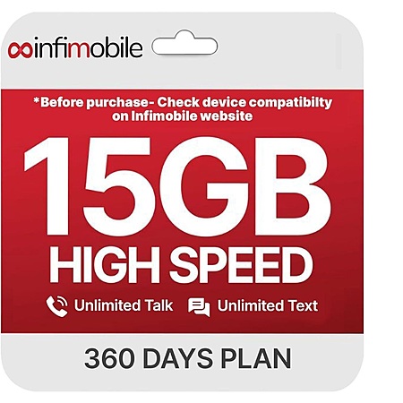 Infinimobile Amazon Prime members Early BF 360 days Unlimited Talk Text Data, 15GB/mo @5G/4G $95