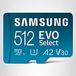 Amazon Resale via Amazon[amazon.com] has 512GB SAMSUNG EVO Select microSD Memory Card + Adapter for $34.43 - 30% at checkout = $24.10. Shipping is free with Prime or on $35+ orders.