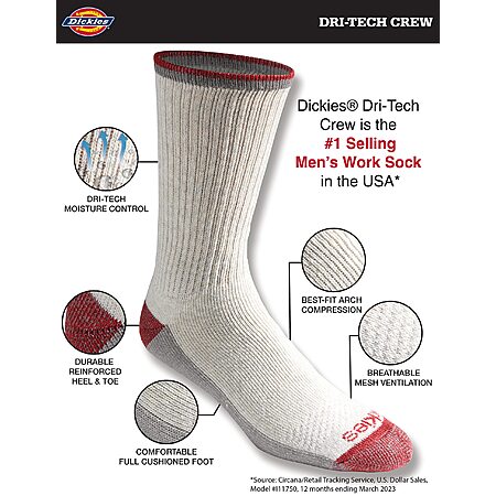 6-Pairs Dickies Men's Dri-Tech Original Moisture Control Crew Socks (Oatmeal Assorted, Large) on sale for $6.65 - $2 when you 'clip' the coupon on the product page =