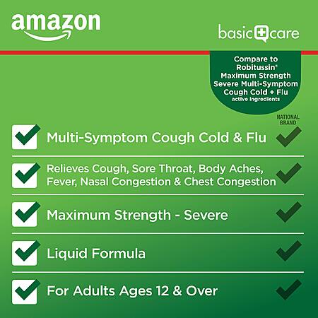 Amazon Basic Care Tussin Severe CF Max Syrup, Multi-Symptom Cough Flu, 8 fl oz $2.76