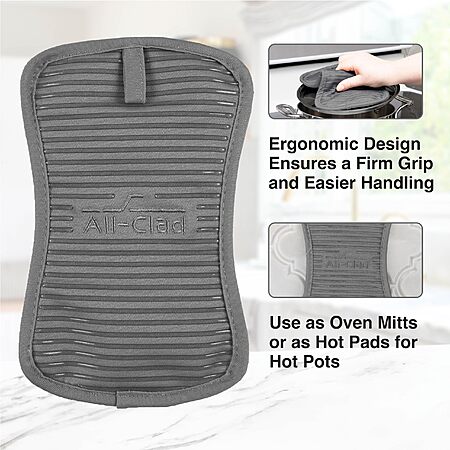 $14.32*:All-Clad Premium Pot Holder & Heating Pad, (2-Pack) Heat Resistant to 500 Degrees, 100% Cotton 10"x6.25" for Kitchen and Barbeque, Pewter