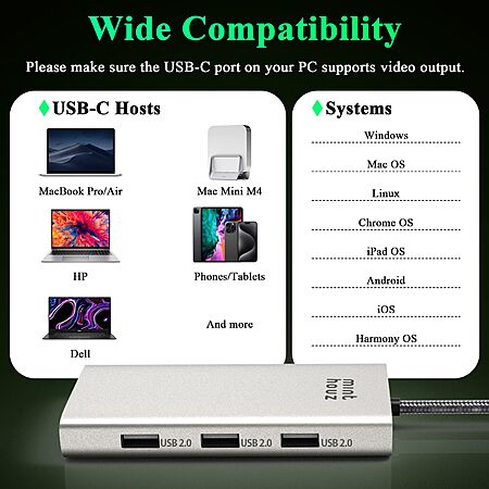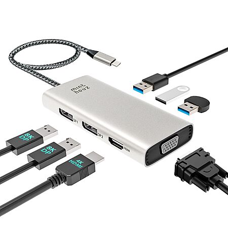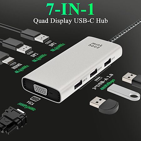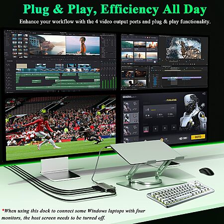 $19.59*:[Prime]USB-C Docking 4 Monitors Station for MacOs&Windows(4K HDMI, Dual 8K DP, VGA, 3×USB2.0 Ports)