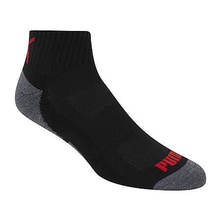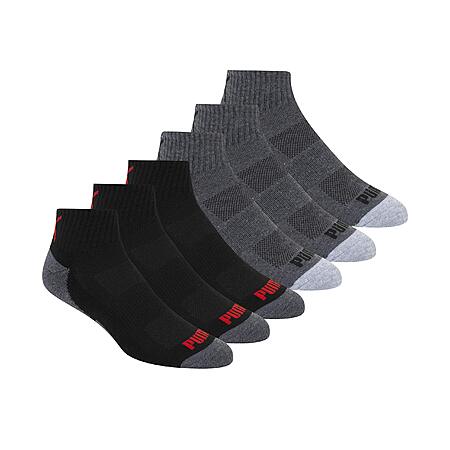 Model: PUMA mens 6 Pack Quarter Crew fashion liner socks, Dark Grey/Black Red Combo, 10 13 US