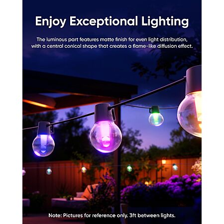 eufyHome via Amazon[amazon.com] has e96' eufy Outdoor String Lights E10 w/ 30 Smart RGBWW LED Bulbs for $69.99. Shipping is free.