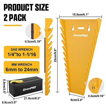2-Pack GRENPRO Magnetic Wrench Holders (SAE 1/4" - 15/16" & Metric 6mm - 24mm)