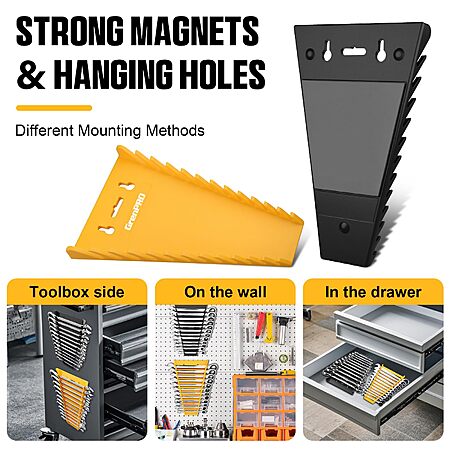 GREN PRO via Amazon has 2-Pack GRENPRO Magnetic Wrench Holders (SAE 1/4" - 15/16" & Metric 6mm - 24mm) on sale for $4.99. Shipping is free with Prime or on $35+ orders.