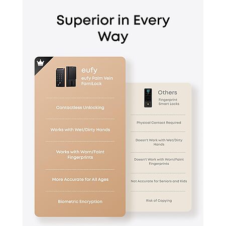 eufyHome via Amazon[amazon.com] has for Prime Members: eufy FamiLock E34 Smart Lock with Palm Vein Recognition for $196.99. Shipping is free.