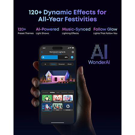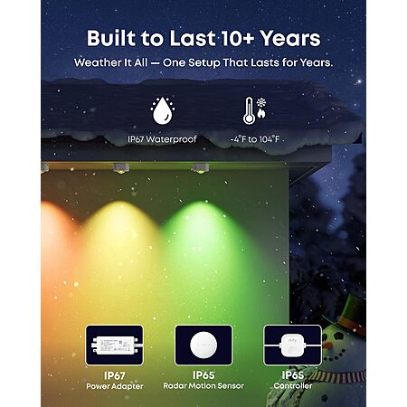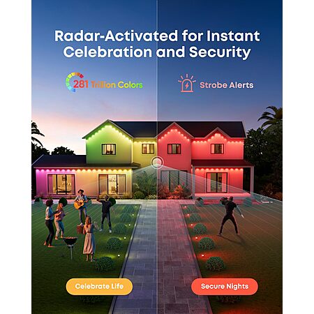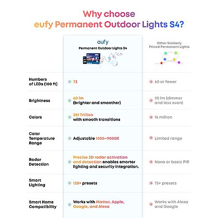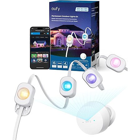 Model: eufy Security - Permanent Outdoor Lights S4, 200ft 144 LEDs, 3D Radar, RGBWW, AI Themes, Music Mode, Matter, IP67, Camera Link
