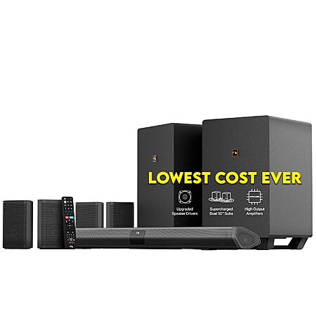 Nakamichi Shockwafe Ultra 9.2.4 Channel Dolby Atmos/DTS:X Soundbar with Dual 10" Subwoofers (Wireless), 4 Rear Surround Effects Speakers, eARC and SSE Max Technology $1199