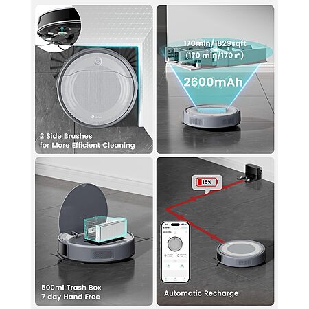 Amazon.com - Lefant M310 Ultra Robot Vacuum and Mop, 6000Pa Suction-Slim Robotic Cleaner with ToF LiDAR Navigation, Accurate Obstacle Avoidance, WiFi/App/Alexa Control, 170min Runtime, for Pet Hair and Home