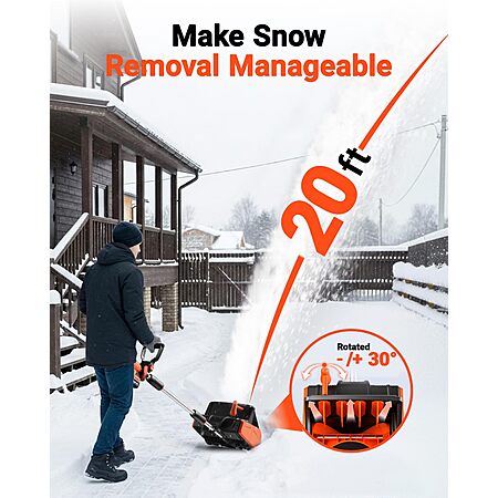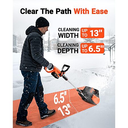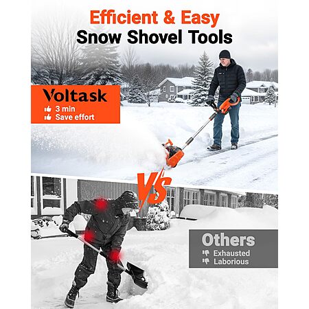 VOLTASK Cordless Snow Shovel/Blower, 13", 24V, (4-Ah Battery & Quick Charger Included) $110.99