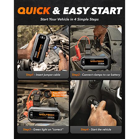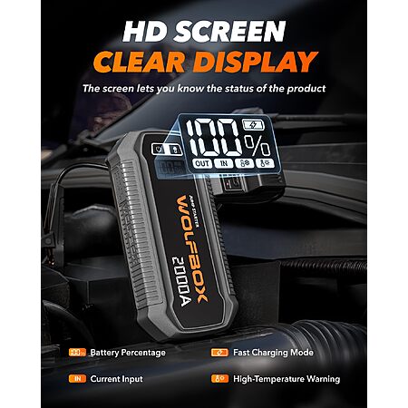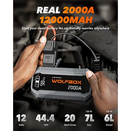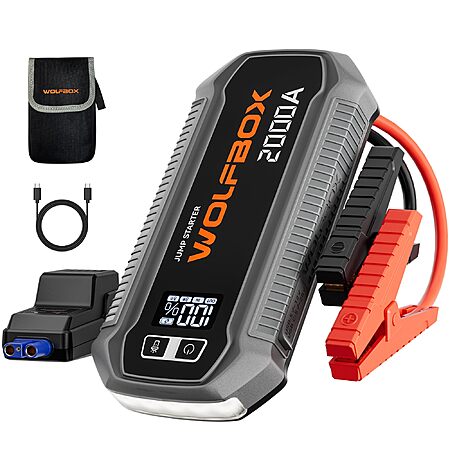 Prime: WOLFBOX 2000A Jump Starter, 12000mAh Battery Jumper Starter Portable with LED Display, 12V Car Battery Jump Starter Pack $29.03