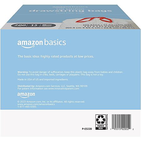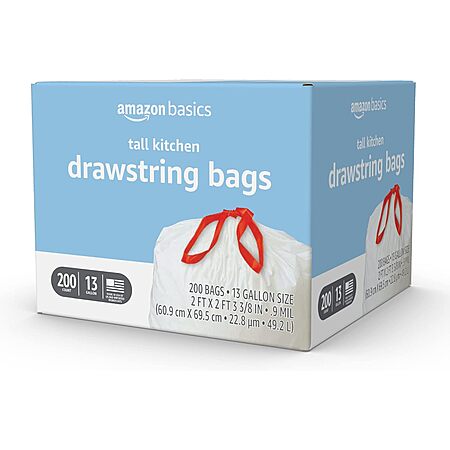 200-Count 13-Gal Amazon Basics Tall Kitchen Drawstring Trash Bags (Clean Fresh Scent) $14.70 w/ S&S + Free Shipping w/ Prime or on $35+
