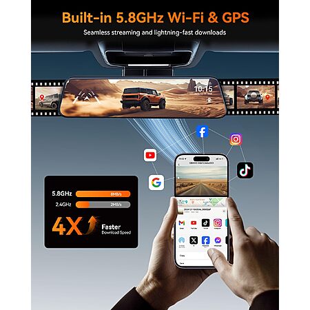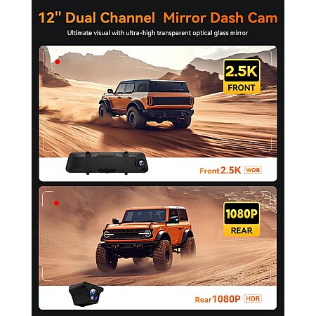 Prime: WOLFBOX G840H 12'' Mirror Dash Cam with ADAS and BSD, 2.5K $111.35