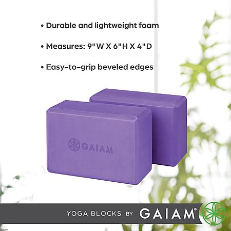 2-Pack Gaiam Latex-Free Eva Foam Yoga Blocks (Beveled Edges, Deep Purple) $4.39 + Free Shipping w/ Prime or on $35+
