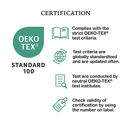 - OEKO-TEX® STANDARD: 100 percent certified