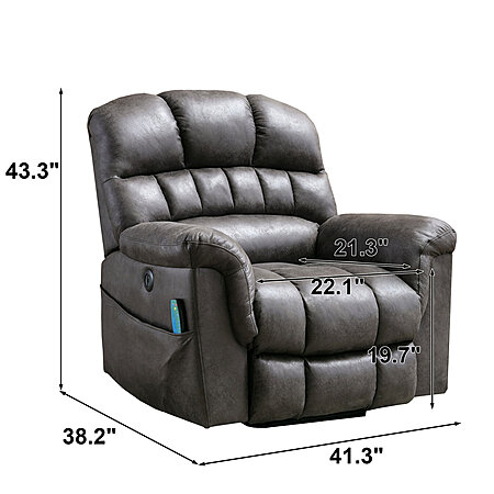 41.3" Latitude Run Wide Extra Large Power Lift Recliner Chair w/ Soothing Heat & Massage (Gray) $370 + Free Shipping