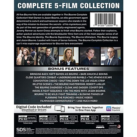 Amazon has 5-Film The Bourne Complete Collection (Blu-ray + Digital HD) on sale for $13.99. Shipping is free w/ Prime or on $35+ orders.