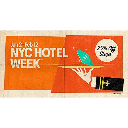 New York City Hotel Week offers 25% savings on over 100 celebrated hotels in New York City. Make the most of your getaway (or staycation) by combining your plans with NYC Restaurant Week, NYC Broadway Week and NYC Must-See Week as part of NYC Winter Outing, which offers the best deals of the year on dining, attractions, Broadway, accommodations and more.