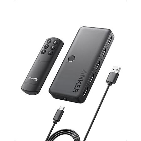 Model: Anker HDMI Switch, 4K@60Hz HDMI Switcher, 4 in 1 Out with Smooth Finish, Supports HDR, 3D, Dolby, DTS, Compatible with Laptops, PC, Xbox, Projector (Charger and Remote Control Batteries Not Included)
