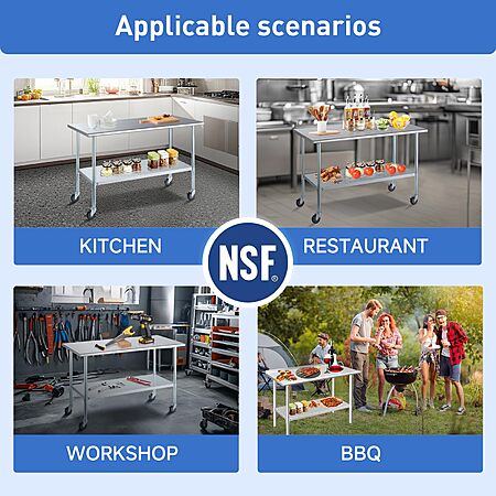 Model: ROCKPOINT Stainless Steel Table for Prep & Work 36x24 Inches, NSF Metal Commercial Kitchen Table with Adjustable Under Shelf and Table Foot for Restaurant, Home and Hotel