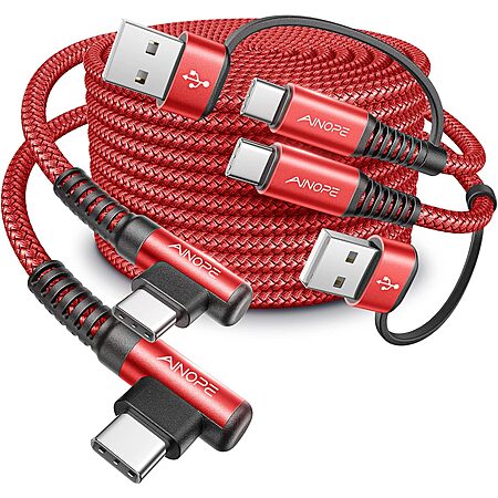 Prime Members: 2-Pack 6.6' AINOPE 60W Right Angle USB-C Cable w/ USB-A Adapters (Black) $5.49, (Red) $5.48 + Free Shipping